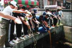 | h.11.1月のグリーン会議で平坂入江を中根さん、尾崎さんと3人でEM浄化しようと立ち上がったのが大きな転機です。まるで惚れて惚れて惚れぬいた理想の女性と相思相愛になったような情熱で燃え上がっていました。2月から支流で実践です。見学者もいろいろありました。 | ||