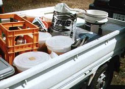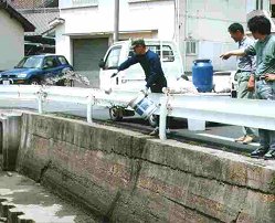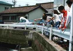 | 正直こんな広い川に挑戦するとは自分でもアホかなと感じた。 尾崎さんのトラックの荷台です。 | ブラジル娘がEM浄化を見学・体験 | |
