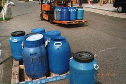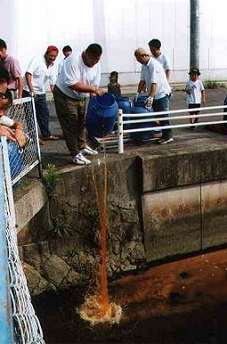 体格のいい方が岡田環境問題委員会の会長で、50L容器を一人で持ち上げます。大きく広くみんなのことを考える方でいい出会いに感謝。