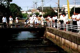 青年会議所(JC)環境問題委員会による平坂入江本流浄化。本流の浄化初日、榊原が講師をさせていただきました