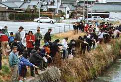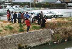 | 節子さんの講演前に節子さんと200人で季節はずれの寒風の中でEM浄化に大ハッスル。みんな笑顔で燃えていた。感動の時でした。 | ||