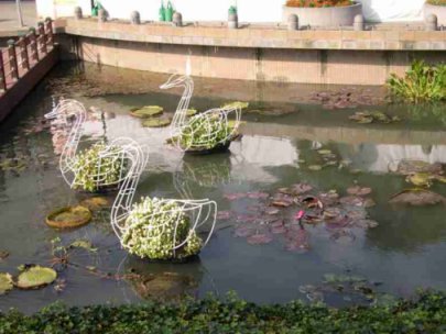 子どもがのれるほど大きく成長したパラグアイオオ二バスとハス。