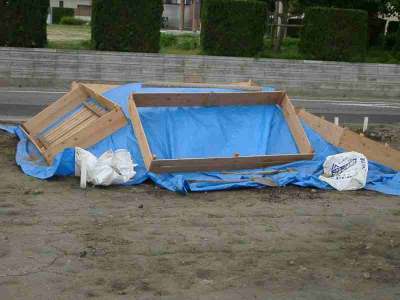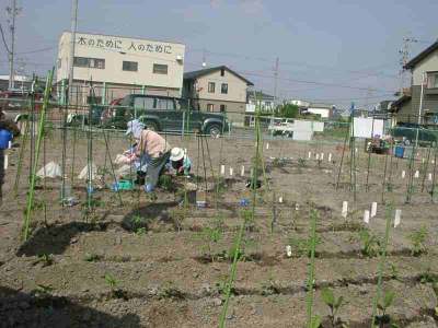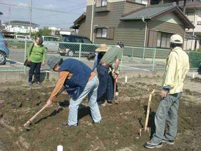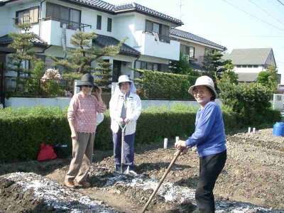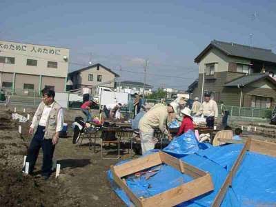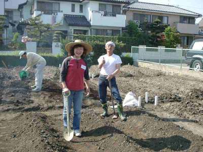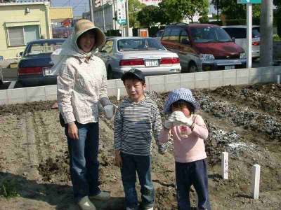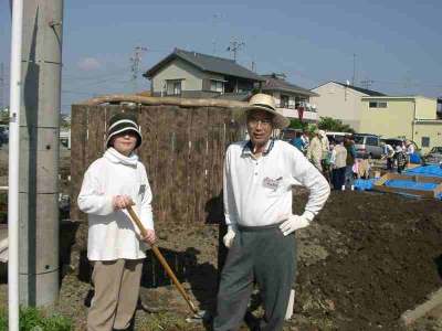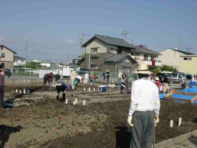 | 2003年4月末日楽農園開園パーティ準備 | それぞれ4.25m×4mの畑 | 守田夫婦 |