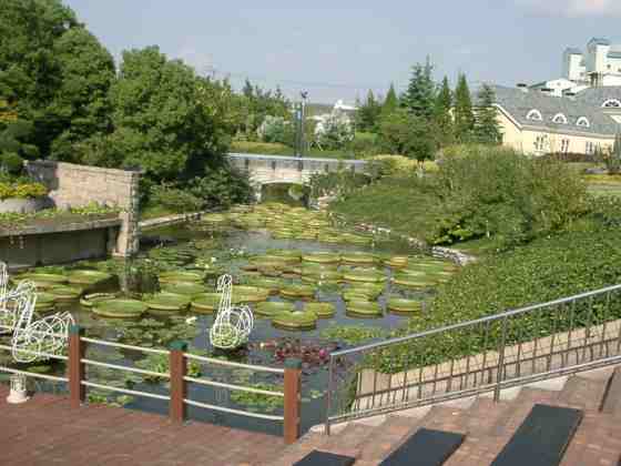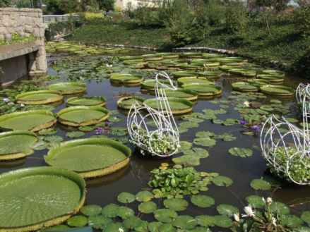 子どもがのれるほど大きく成長したパラグアイオオ二バスとハス。