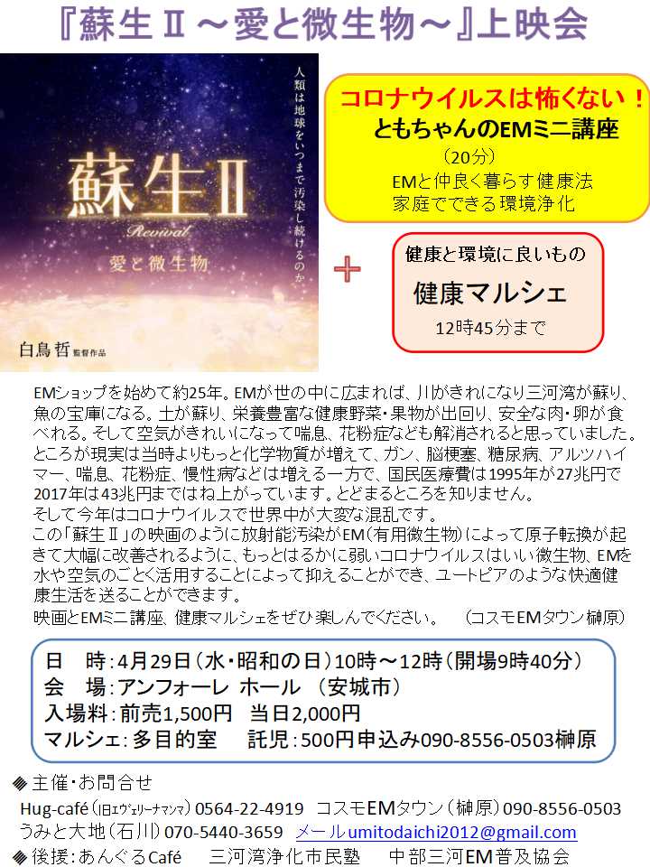 『蘇生Ⅱ~愛と微生物~』等の上映スケジュール