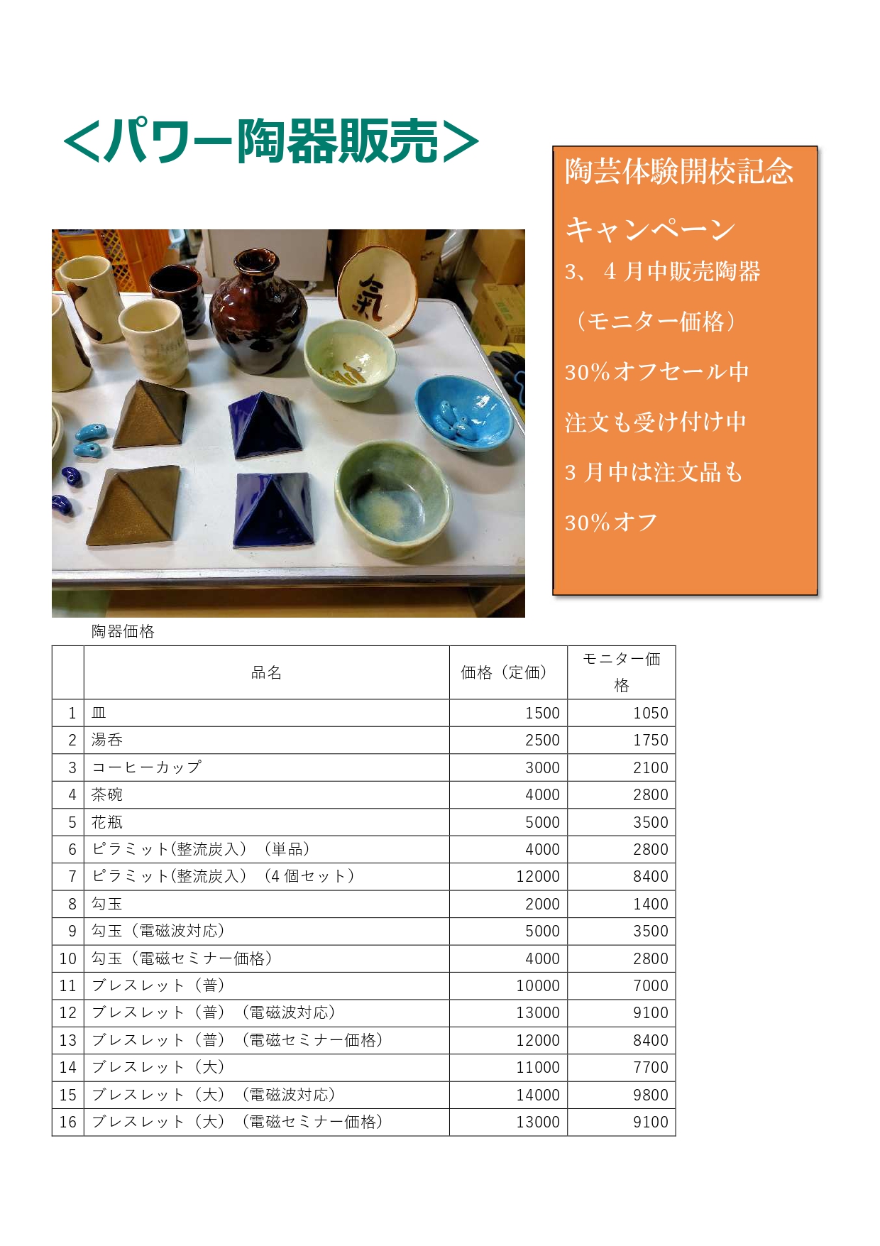 コスモEMタウンでは、店舗の2階に陶芸窯を設置し、現在陶芸愛好家に「波動発生陶器」を作成していただいております。